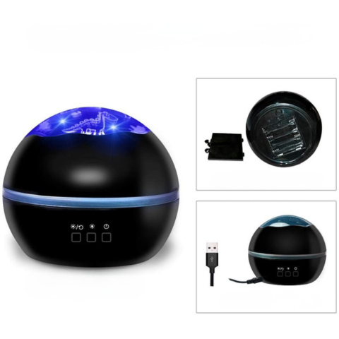 Denne lampe projicerer billeder af dinosaurer som Tyrannosaurus, Triceratops, Brachiosaurus og Pteranodon. Den har to driftstilstande: projektion og natlys. Med 9 farver at vælge imellem skaber den en magisk atmosfære for børn.